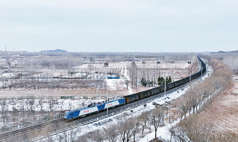 图为2025年2月1日,2万吨重载列车行驶在大秦铁路上,把山西、陕西、内蒙古西部的煤炭运往渤海湾,把光和热送往千家万户。 中国铁路太原局集团有限公司供图