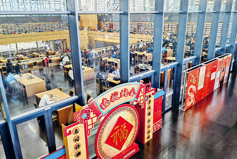 开卷迎新是不少读者的选择。大年初四早上九点半,开馆不到半小时,国家图书馆的阅览区内,1000多个座位已经坐满。人们在宁静的氛围中专心读书。2025年春节除夕至初七,共接待到馆读者77729人次。国家图书馆工作人员介绍:“过节这几天,国图的读者们阅读热情丝毫未减,说明现在整个社会和大众都有学习的愿望。”