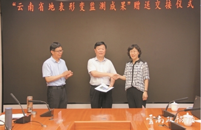 燕琴(右一)出席“云南省地表形变监测成果”赠送交接仪式