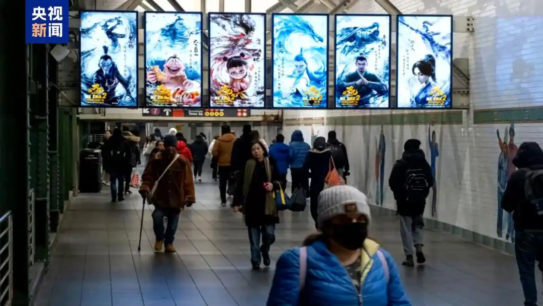 △《哪吒2》海报亮相美国纽约多个地铁站。