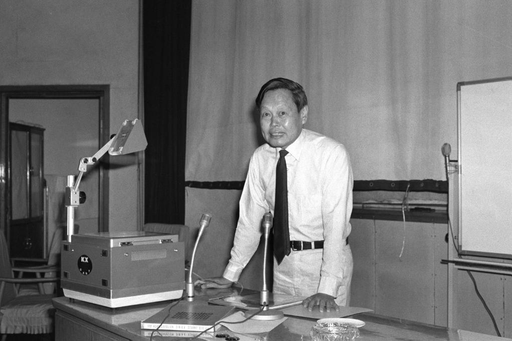 1986年5月26日,杨振宁在北京向来自全国各地的物理研究生和科研人员作报告。新华社记者 兰红光 摄