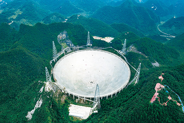 圖為無人機拍攝的被譽為“中國天眼”的500米口徑球面射電望遠鏡(FAST)。 新華社記者 歐東衡/攝