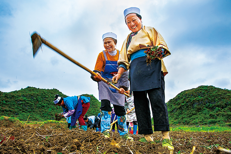 發(fā)展產(chǎn)業(yè)是實(shí)現(xiàn)脫貧的根本之策,是鞏固扶貧成果的根本手段。貴州正持續(xù)強(qiáng)力發(fā)起脫貧攻堅(jiān),推進(jìn)一場(chǎng)深刻的產(chǎn)業(yè)革命。圖為安順市西秀區(qū)舊州鎮(zhèn)村民種植折耳根喜獲豐收,150畝折耳根成了致富草。 王興友/攝