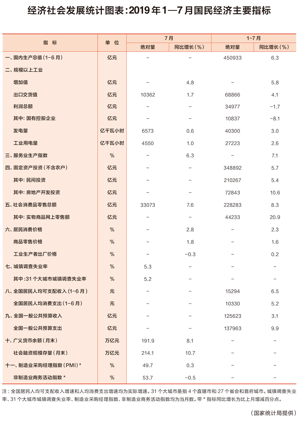 經(jīng)濟社會發(fā)展統(tǒng)計圖表:2019年1—7月國民經(jīng)濟主要指標