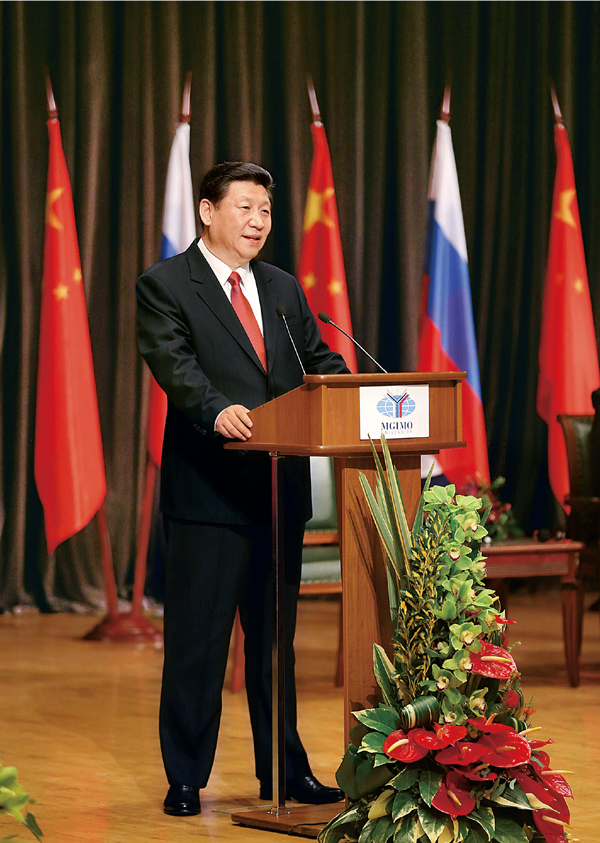 2013年3月23日,國家主席習(xí)近平在莫斯科國際關(guān)系學(xué)院發(fā)表題為《順應(yīng)時代前進(jìn)潮流 促進(jìn)世界和平發(fā)展》的演講。 新華社記者 丁林/攝