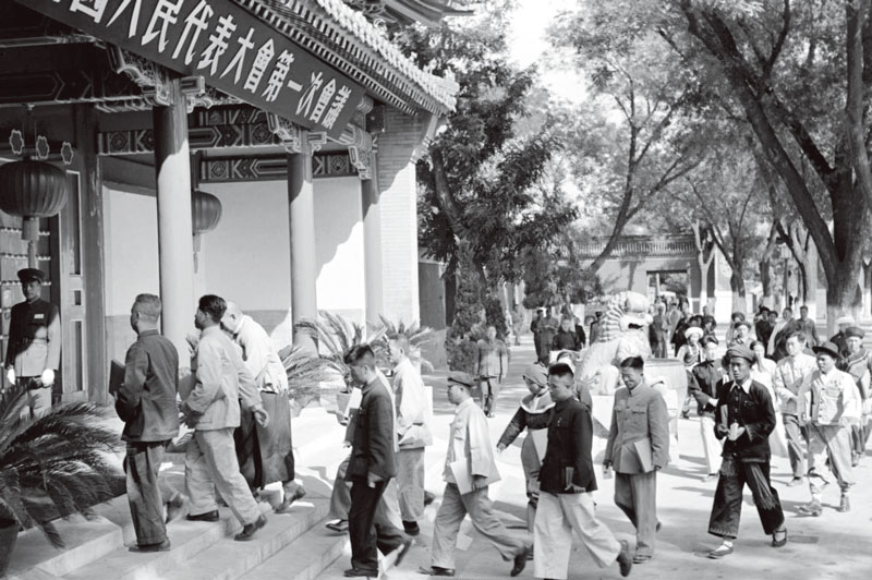 1954年9月15日至28日,第一屆全國人民代表大會第一次會議在中南海懷仁堂隆重召開。一屆全國人大一次會議到二屆全國人大一次會議均在中南海懷仁堂召開。1959年9月,人民大會堂落成。從1960年二屆全國人大二次會議開始,全國人大每次全體會議都在人民大會堂召開。圖為一屆全國人大代表進入中南海懷仁堂會場。新華社記者 齊觀山/攝