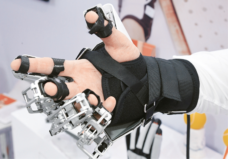 2020年中國國際服務貿(mào)易交易會9月4日至9日在北京舉行。展會期間,眾多新技術新成果亮相展示,領域涵蓋人工智能、物聯(lián)網(wǎng)、智慧家居等各類技術、服務在生活中的應用,讓觀眾體驗貼心的服務,感受科技助力美好生活。圖為9月7日,工作人員在服貿(mào)會服務機器人專題展區(qū)展示手功能康復外骨骼機器手。它可用于幫助因神經(jīng)肌肉骨骼系統(tǒng)受損造成手部運動功能障礙的患者進行康復訓練。 新華社記者 任超/攝