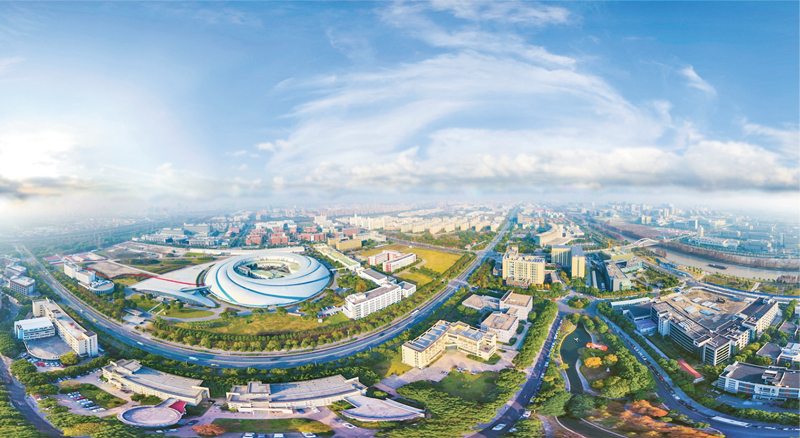 在上海浦東張江科學(xué)城,有一個(gè)標(biāo)志性建筑——“鸚鵡螺”,它就是上海光源。上海光源是中國(guó)大陸第一臺(tái)中能第三代同步輻射光源,在投入使用的10多年時(shí)間里,催生了物理、材料、能源與催化、生命與健康等諸多領(lǐng)域多項(xiàng)國(guó)際頂級(jí)科研成果。圖為上海光源俯瞰圖。 浦東新區(qū)區(qū)委宣傳部供圖