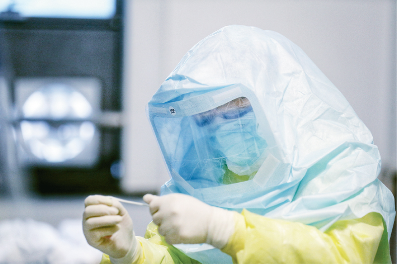 2020年1月26日,正是大年初二,北京協(xié)和醫(yī)院響應(yīng)國(guó)家號(hào)召,吹響馳援武漢的號(hào)角,劉正印作為第一批北京協(xié)和醫(yī)院國(guó)家援鄂抗疫醫(yī)療隊(duì)的隊(duì)長(zhǎng),披甲出征。到達(dá)武漢后,醫(yī)療隊(duì)先后籌建了普通病房和重癥監(jiān)護(hù)病房(ICU),劉正印每次都親力親為。作為黨員,他第一批進(jìn)病房,與病人零距離接觸,并堅(jiān)持每天進(jìn)病房,用實(shí)際行動(dòng)作出表率?!安蓸?biāo)”是醫(yī)生接觸病毒量最高的工作。圖為2月14日,劉正印在湖北武漢同濟(jì)醫(yī)院中法新城院區(qū)為病人“采標(biāo)”。 新華社發(fā) 崔萌/攝