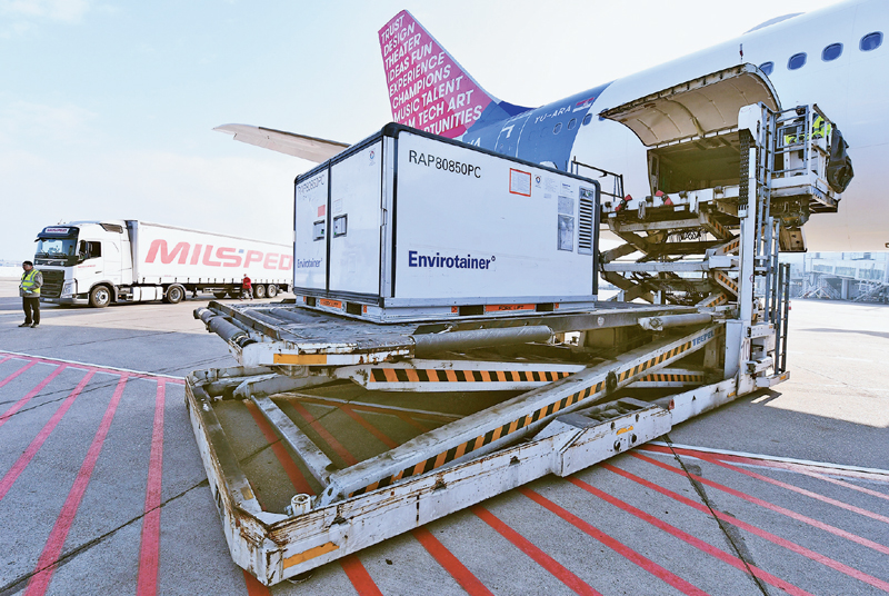 中國新冠疫苗上市以來,世界多國積極采購,給中國疫苗投下“信任票”。圖為2021年1月16日,在塞爾維亞首都貝爾格萊德,機(jī)場工作人員卸載首批中國新冠疫苗。 新華社發(fā) 普雷德拉格·米洛薩夫列維奇/攝
