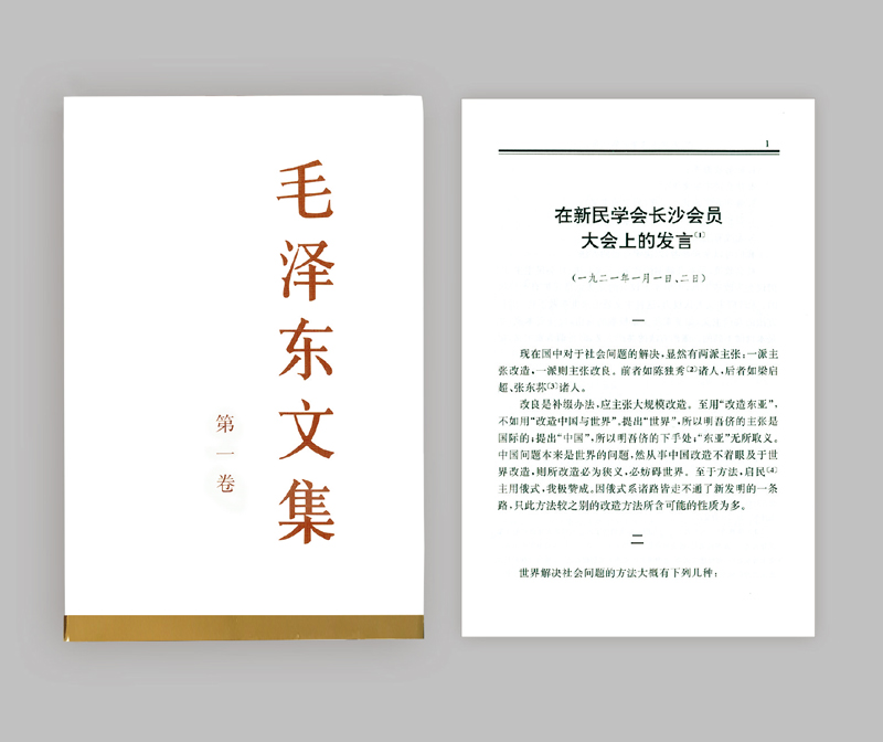 圖為《毛澤東文集》第一卷作為開篇收入的毛澤東在新民學(xué)會長沙會員大會上的發(fā)言。