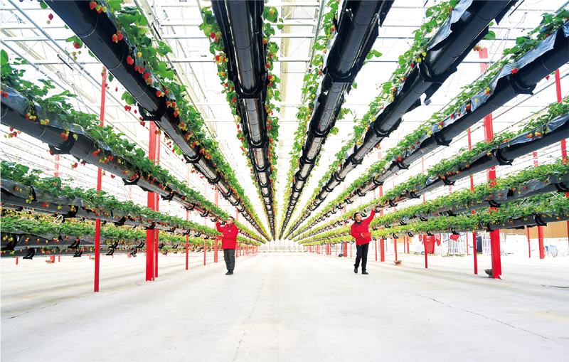 “十四五”時(shí)期,要全面實(shí)施鄉(xiāng)村振興戰(zhàn)略,加快農(nóng)業(yè)農(nóng)村現(xiàn)代化步伐,促進(jìn)農(nóng)業(yè)高質(zhì)高效、鄉(xiāng)村宜居宜業(yè)、農(nóng)民富裕富足。圖為2021年1月21日,在浙江省建德市楊村橋草莓小鎮(zhèn)的智慧大棚里,管理人員正在采摘成熟的果實(shí)。近年來,該鎮(zhèn)推動農(nóng)業(yè)轉(zhuǎn)型升級,實(shí)施“農(nóng)業(yè)大腦”項(xiàng)目,幫助莓農(nóng)實(shí)現(xiàn)數(shù)字化產(chǎn)銷,推動農(nóng)業(yè)增產(chǎn)增收?!?/font>人民圖片 寧文武/攝