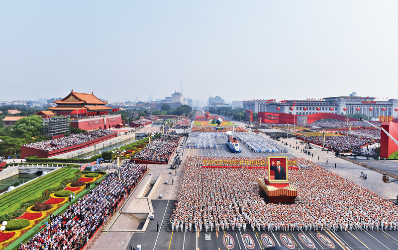黨的十八大以來,我們黨之所以能戰(zhàn)勝一系列風險挑戰(zhàn),推動黨和國家事業(yè)取得歷史性成就、發(fā)生歷史性變革,根本在于全黨緊密團結(jié)在以習近平同志為核心的黨中央周圍,堅決維護習近平總書記黨中央的核心、全黨的核心地位,堅決維護黨中央權(quán)威和集中統(tǒng)一領(lǐng)導。圖為2019年10月1日,在慶祝中華人民共和國成立70周年大會上的“偉大復興”方陣。 新華社記者 徐昱/攝