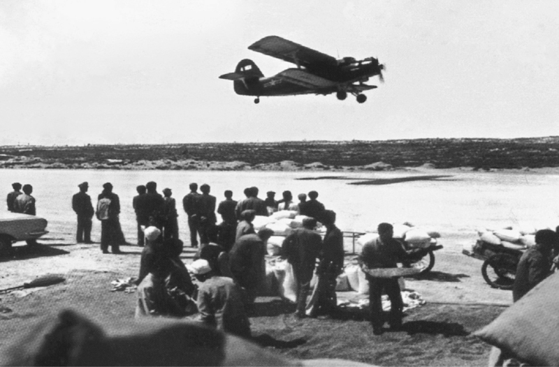 1982年初,黨和國家號召空軍要參加支援農(nóng)業(yè)、林業(yè)建設(shè)的專業(yè)飛行任務(wù)??哲婞h委迅速決策部署,運輸航空兵部隊很快改裝了一批飛機,訓(xùn)練了一批能夠執(zhí)行飛播任務(wù)的機組。圖為1982年5月2日,空軍某運輸搜救團一大隊從甘肅臨夏太子山地區(qū)開啟飛播航程,拉開了連續(xù)40年飛播造林的序幕。 空軍政治工作部宣傳局供圖