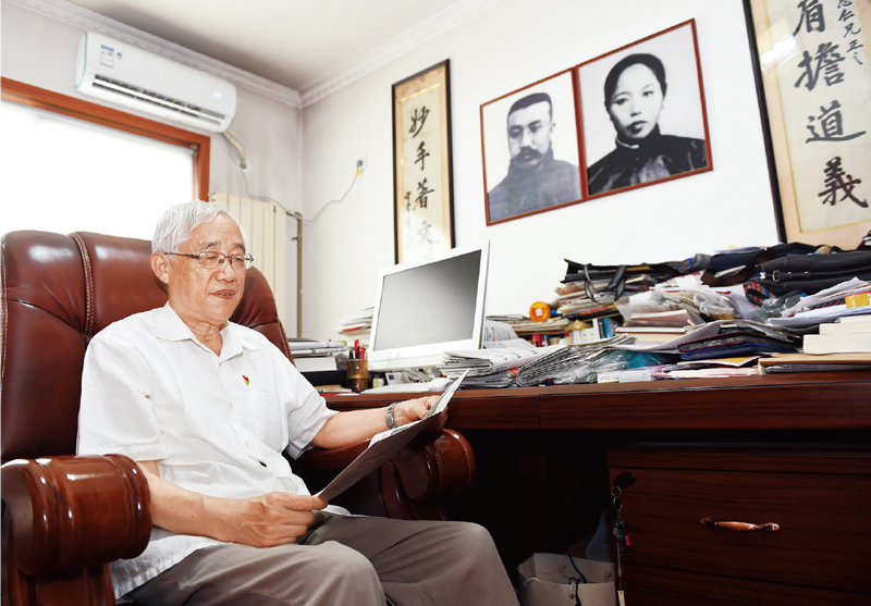 圖為2021年6月12日,李宏塔在家中書房讀報。 新華社記者 周牧/攝
