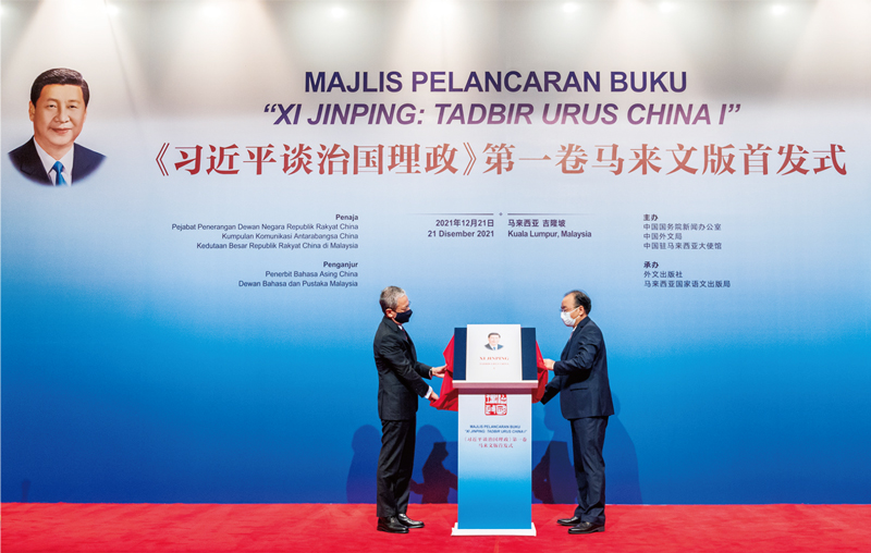 2021年12月21日,《習(xí)近平談治國(guó)理政》第一卷馬來(lái)文版首發(fā)式在馬來(lái)西亞吉隆坡舉行。 新華社記者 朱煒/攝