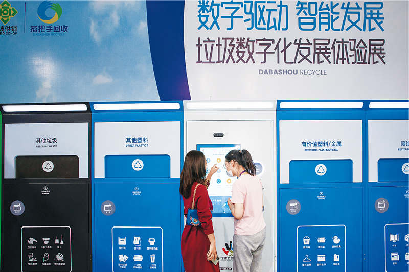 數(shù)字經(jīng)濟發(fā)展速度之快、輻射范圍之廣、影響程度之深前所未有,發(fā)展數(shù)字經(jīng)濟是把握新一輪科技革命和產(chǎn)業(yè)變革新機遇的戰(zhàn)略選擇。圖為2021年10月15日,在2021世界數(shù)字經(jīng)濟大會暨第十一屆智博會上,垃圾數(shù)字化設備受到客商青睞?!∏笫菆D片 董小飛/攝