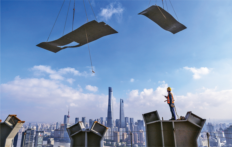 萬丈高樓平地起。2021年9月17日,在上海市黃浦區(qū)外灘一個(gè)項(xiàng)目工地現(xiàn)場(chǎng),一位施工人員正在吊裝樓層鋼板,兩塊樓層鋼板猶如大鵬在空中展翅翱翔。 上海市工程設(shè)備監(jiān)理有限公司 胡志民/攝