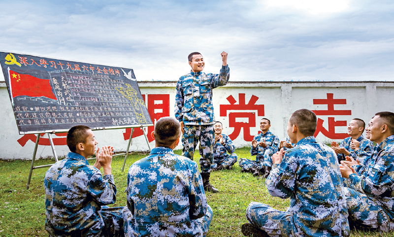 近期,全軍將學(xué)習(xí)宣傳貫徹黨的十九屆六中全會精神作為重大政治任務(wù)有力有序推進。圖為海軍陸戰(zhàn)隊某大隊組織新兵學(xué)習(xí)全會精神,引導(dǎo)新兵堅定理想信念、矢志建功軍營?!O宏韜/攝