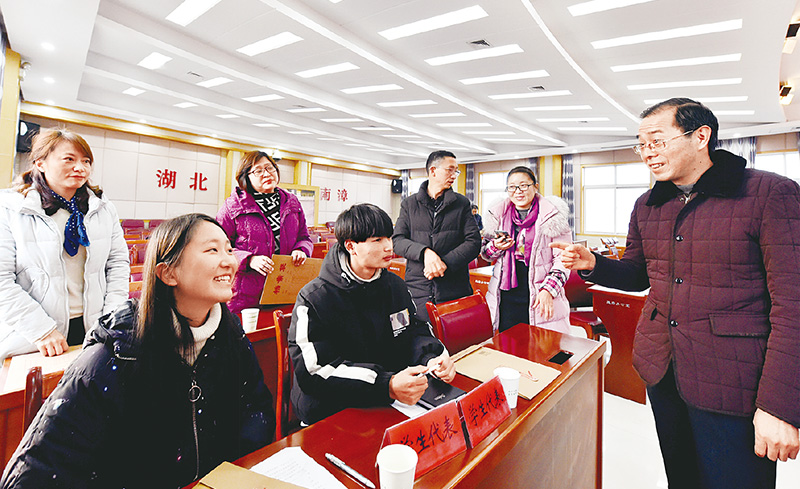 2019年12月22日,湖北省襄陽市南漳縣居民和學(xué)生受邀走進(jìn)南漳縣第十八屆人大常委會第二十三次會議會場旁聽會議,零距離了解和感受人民代表大會制度和人大工作,體會“人民當(dāng)家作主”的真諦。圖為當(dāng)日會后受邀居民、學(xué)生交流旁聽會議的感受。 人民圖片 熊明銀/攝
