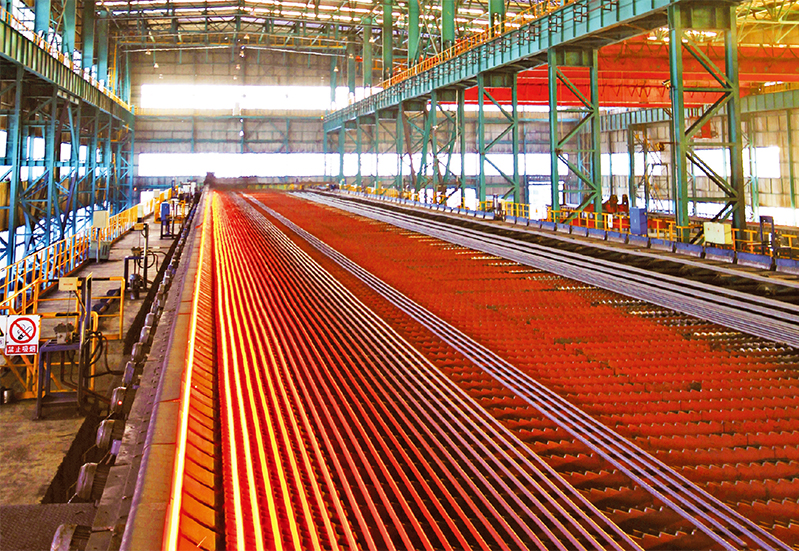 2021年11月24日,內(nèi)蒙古興安盟烏蘭浩特鋼鐵有限責任公司研發(fā)的32毫米高強抗震大規(guī)格熱軋帶肋螺紋鋼生產(chǎn)成功,剛下生產(chǎn)線的新產(chǎn)品就被客戶搶購一空。圖為11月25日工人們正在加緊生產(chǎn)?!∏笫菆D片 鄭志宏/攝