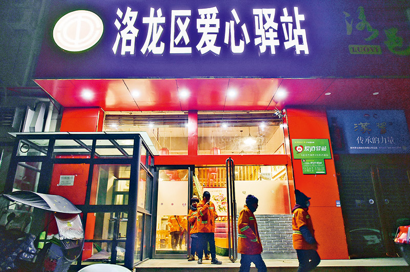 為解決環(huán)衛(wèi)工人吃早餐難問(wèn)題,河南省洛陽(yáng)市為早班一線環(huán)衛(wèi)工人提供免費(fèi)早餐,費(fèi)用由洛陽(yáng)市各縣(市)區(qū)工會(huì)、財(cái)政和環(huán)衛(wèi)企業(yè)進(jìn)行補(bǔ)貼。圖為2021年12月19日清晨,環(huán)衛(wèi)工人在洛陽(yáng)市洛龍區(qū)牡丹大道旁的“愛(ài)心驛站”用餐后離開(kāi)。 新華社發(fā) 黃政偉/攝