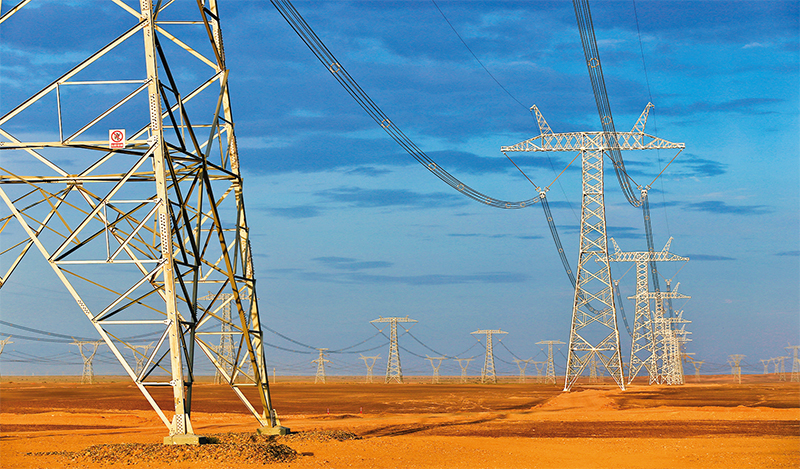 準東—皖南±1100千伏特高壓直流輸電工程是我國自主研發(fā)的世界電壓等級最高、輸電容量最大、輸電距離最遠的特高壓工程。工程每年可減少華東地區(qū)燃煤消耗約3800萬噸,成為連接西部邊疆與華東地區(qū)的“電力絲綢之路”。圖為該工程的新疆哈密段輸電線路。 國家電網(wǎng)有限公司黨組宣傳部供圖
