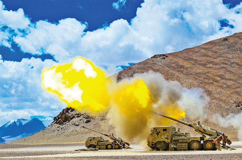 初夏時(shí)節(jié),陸軍某火力團(tuán)展開多火器跨晝夜實(shí)彈射擊演練。圖為某新型火炮實(shí)施遠(yuǎn)程火力打擊。 陳明/攝
