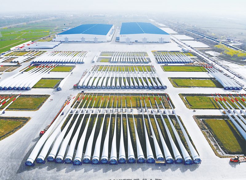中國(guó)建材集團(tuán)風(fēng)電葉片年總產(chǎn)能19660兆瓦,產(chǎn)品覆蓋1.0兆瓦到15.0兆瓦系列,擁有100余個(gè)型號(hào),開發(fā)出112米海上風(fēng)電葉片。圖為中國(guó)建材集團(tuán)風(fēng)電葉片阜寧生產(chǎn)基地。 中國(guó)建材集團(tuán)供圖
