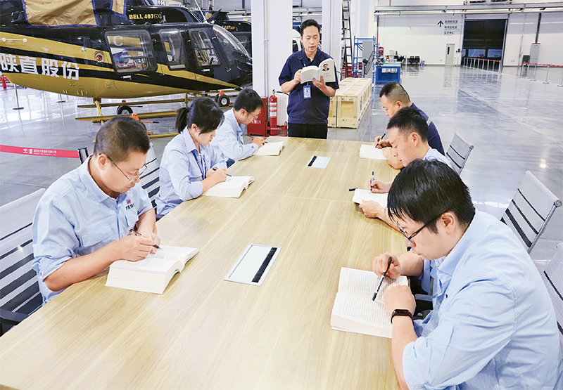 2022年9月9日,陜西直升機(jī)股份有限公司第三黨支部在公司產(chǎn)業(yè)園生產(chǎn)制造區(qū)讀書角進(jìn)行《習(xí)近平談治國理政》第四卷專題學(xué)習(xí)。 陜西日?qǐng)?bào)記者 張辰/攝