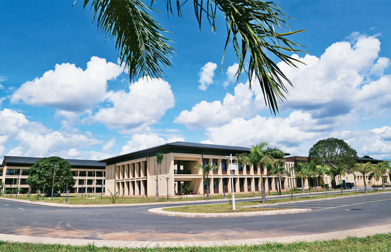 2022年2月,南部非洲六姊妹黨聯(lián)合建設的尼雷爾領導力學院竣工啟用,習近平總書記致賀信,之后又給該學院南部非洲六姊妹黨中青年干部研討班全體學員回信,勉勵學員互學互鑒、共同進步,展現(xiàn)出我們黨致力于促進世界各國共同發(fā)展的博大胸襟和天下情懷。圖為在坦桑尼亞濱海省拍攝的尼雷爾領導力學院教學樓。 新華社發(fā) 赫曼·伊曼努爾/攝