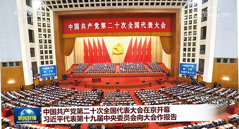 2022年10月16日,中國(guó)共產(chǎn)黨第二十次全國(guó)代表大會(huì)勝利召開。圖為中央廣播電視總臺(tái)直播大會(huì)開幕會(huì)。 中央廣播電視總臺(tái)供圖