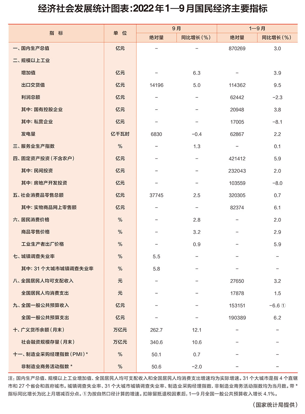 經(jīng)濟社會發(fā)展統(tǒng)計圖表:2022年1—9月國民經(jīng)濟主要指標(biāo)