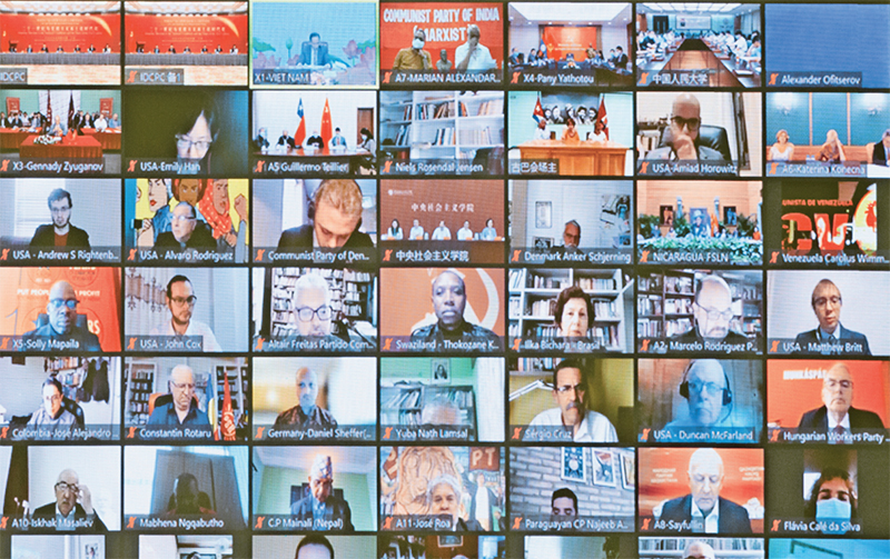2022年7月28日,中國共產(chǎn)黨與世界馬克思主義政黨論壇以“二十一世紀(jì)馬克思主義本土化時代化”為主題,以視頻方式舉辦,來自70多個國家100多個馬克思主義政黨、左翼政黨和政治組織的代表300多人參會?!≈泄仓醒雽ν饴?lián)絡(luò)部供圖