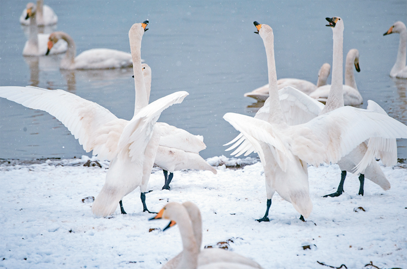 在習近平法治思想指引下,新時代十年我們黨加強了生態(tài)環(huán)境保護立法和執(zhí)法力度,人與自然和諧共生的美好圖景不斷展現。圖為2022年1月23日在河南三門峽天鵝湖國家城市濕地公園拍攝的白天鵝。從2022年6月1日起,《中華人民共和國濕地保護法》開始實施,被喻為“地球之腎”的濕地,在我國將得到更好保護?!⌒氯A社發(fā) 杜杰/攝