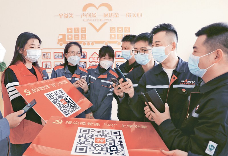 2022年11月15日,在山東省東營(yíng)市的東營(yíng)區(qū)化工產(chǎn)業(yè)園區(qū)“紅運(yùn)家”紅領(lǐng)驛站,非公企業(yè)黨員掃描“指尖微黨課”二維碼學(xué)習(xí)黨章等知識(shí),推動(dòng)黨的二十大精神和《中國(guó)共產(chǎn)黨章程》深入人心、落地生根?!∪嗣駡D片 劉智峰/攝