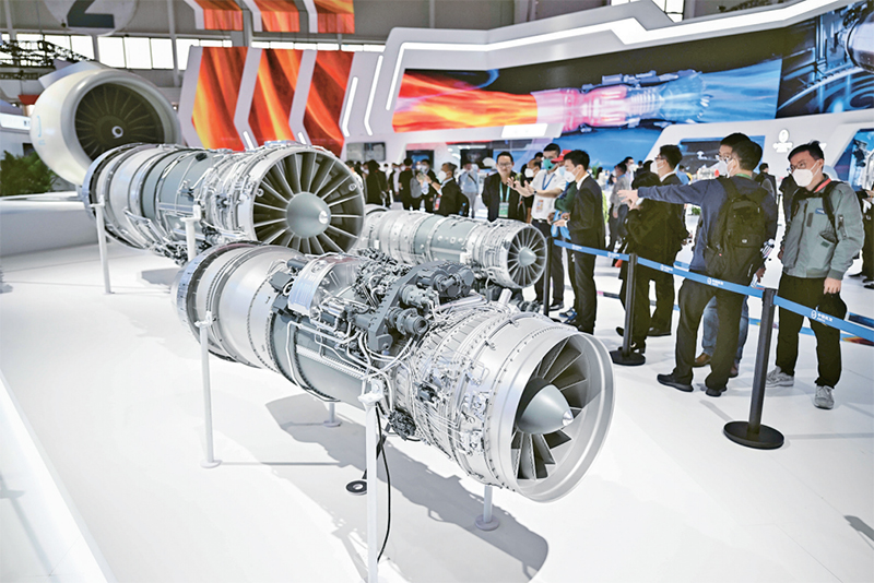 航空發(fā)動機(jī)是工業(yè)“皇冠上的明珠”,“太行”發(fā)動機(jī)作為第三代大推力渦扇發(fā)動機(jī),逐步實(shí)現(xiàn)系列化發(fā)展,標(biāo)志著我國航空動力領(lǐng)域整體實(shí)力和技術(shù)水平得到大幅躍升。圖為2022年11月8日,在第十四屆中國航展上拍攝的“太行”系列發(fā)動機(jī)?!⌒氯A社記者 鄧華/攝