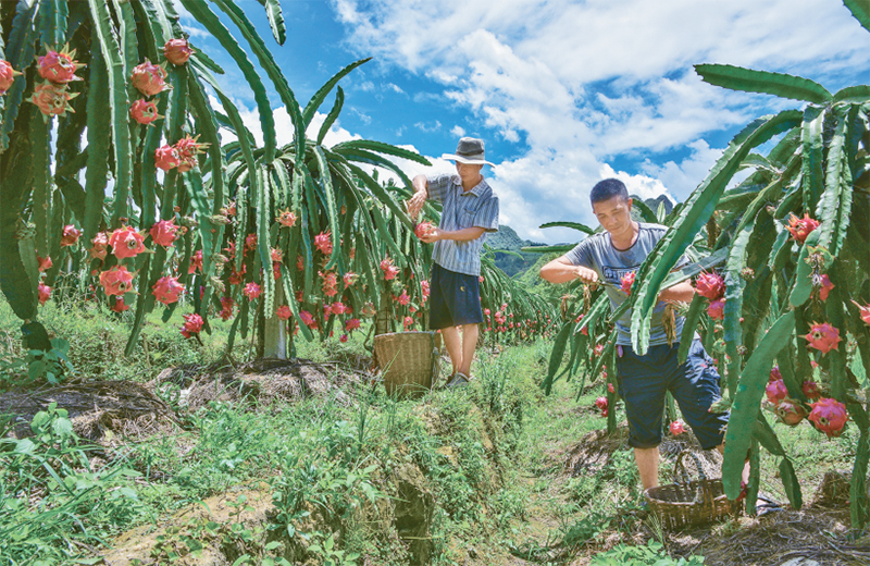 圖為2022年9月,西疇縣雞街鄉(xiāng)那馬村村民迎來火龍果豐收季?!蔚氯?攝