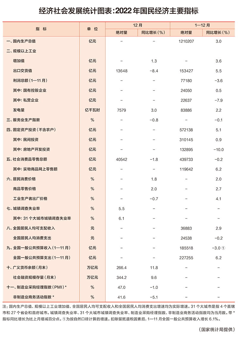 經(jīng)濟社會發(fā)展統(tǒng)計圖表:2022年國民經(jīng)濟主要指標
