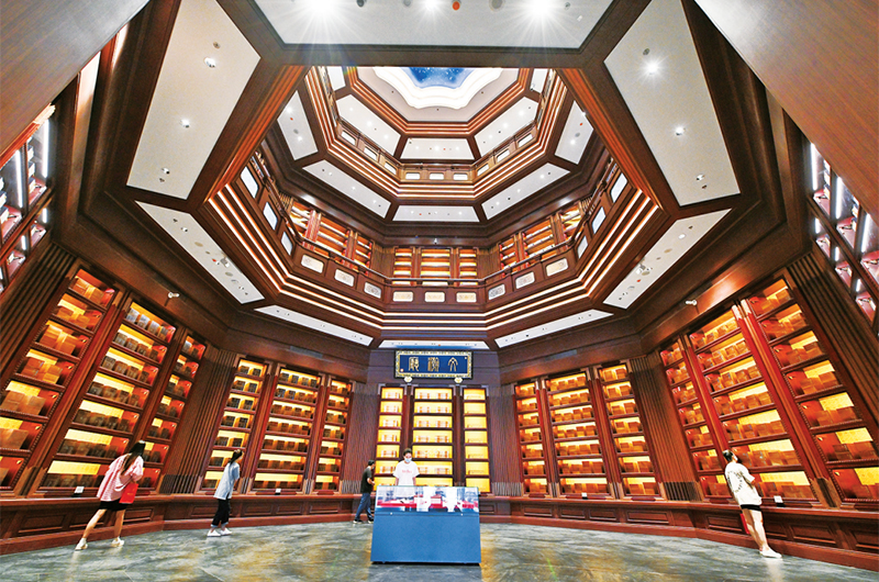 增強(qiáng)實現(xiàn)中華民族偉大復(fù)興的精神力量,離不開精神傳統(tǒng)的承揚和開新。中國國家版本館是國家版本資源總庫和中華文化種子基因庫,全面履行國家版本資源保藏傳承職責(zé)。圖為2022年7月30日,觀眾在中國國家版本館中央總館文瀚廳內(nèi)參觀。 新華社記者 李鑫/攝