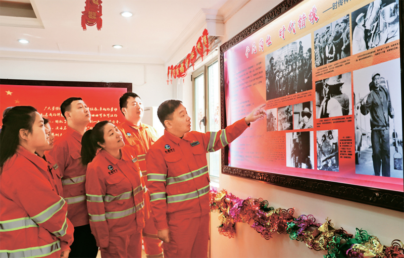2023年1月,北京市東城環(huán)衛(wèi)中心開展宣傳模范事跡、學(xué)習(xí)模范品質(zhì)、踐行模范精神的專題活動(dòng)。圖為1月19日,時(shí)傳祥所組織青年職工在環(huán)衛(wèi)中心教育基地學(xué)習(xí)。 北京市東城環(huán)衛(wèi)中心供圖
