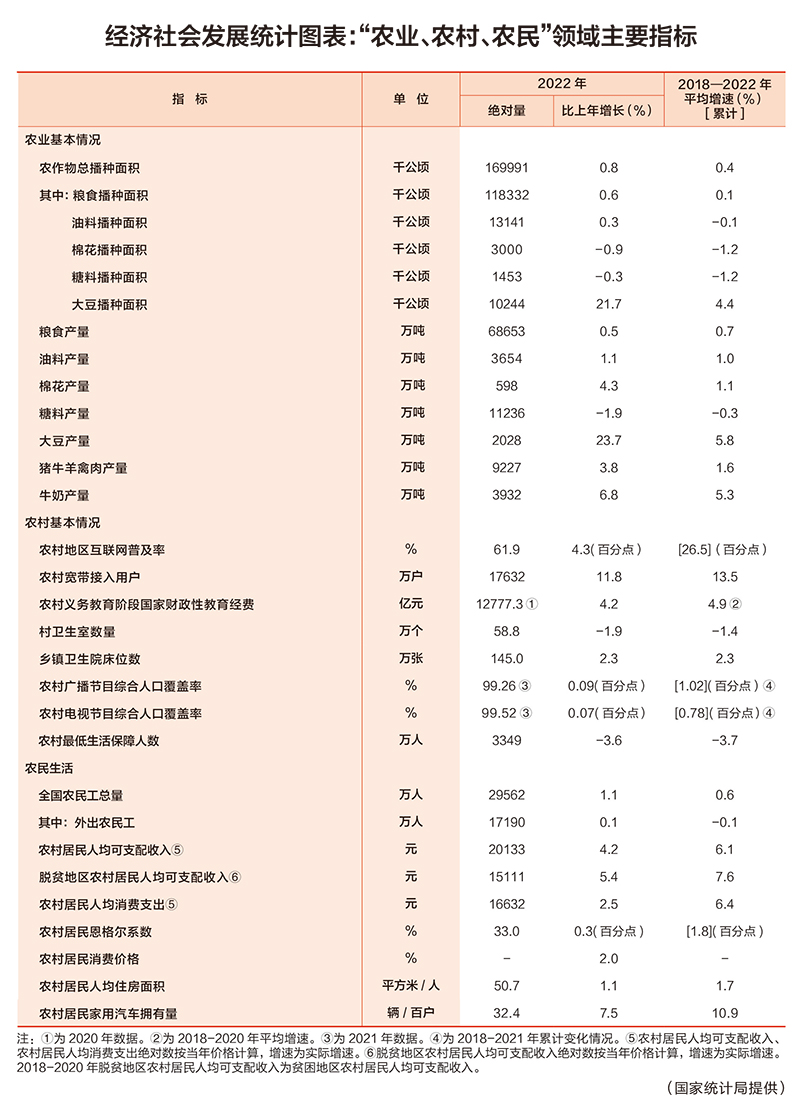 經(jīng)濟社會發(fā)展統(tǒng)計圖表:“農(nóng)業(yè)、農(nóng)村、農(nóng)民”領(lǐng)域主要指標(biāo)