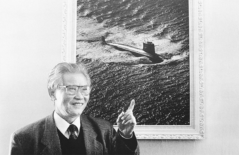 圖為1997年1月20日,彭士祿在中國(guó)船艦研究院介紹我國(guó)首艘下水航行的核潛艇。 中國(guó)核工業(yè)集團(tuán)有限公司供圖
