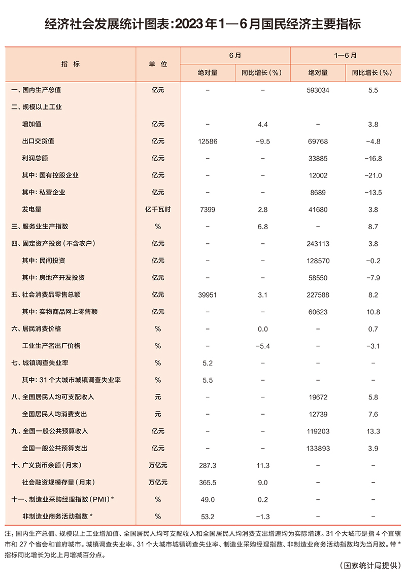 經(jīng)濟(jì)社會(huì)發(fā)展統(tǒng)計(jì)圖表:2023年1—6月國(guó)民經(jīng)濟(jì)主要指標(biāo)