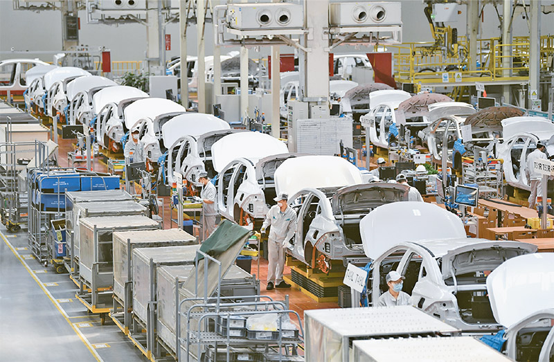 2023年4月12日,習(xí)近平總書記來到廣汽埃安新能源汽車股份有限公司考察。他走進企業(yè)展廳、總裝車間、電池生產(chǎn)車間等,了解企業(yè)突破關(guān)鍵核心技術(shù)和推動制造業(yè)高端化、智能化、綠色化等進展情況。圖為廣汽埃安新能源汽車股份有限公司總裝生產(chǎn)線。 新華社記者 鄧華/攝