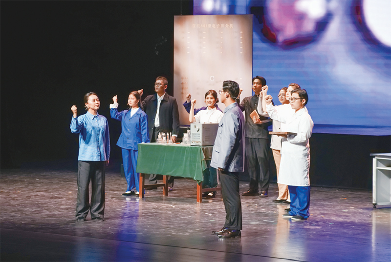 2023年5月19日,復旦大學原創(chuàng)校史展演劇《追夢百年》在相輝堂上演。劇目以“星火”黨員志愿服務(wù)隊尋訪復旦紅色基因為線索,選取118年校史中的真實事件,展現(xiàn)不同時代復旦人的追夢歷程,生動再現(xiàn)了一代又一代復旦人與黨同心、與國同行的精神風貌與堅定理想、報國奮斗的責任擔當。 復旦大學供圖