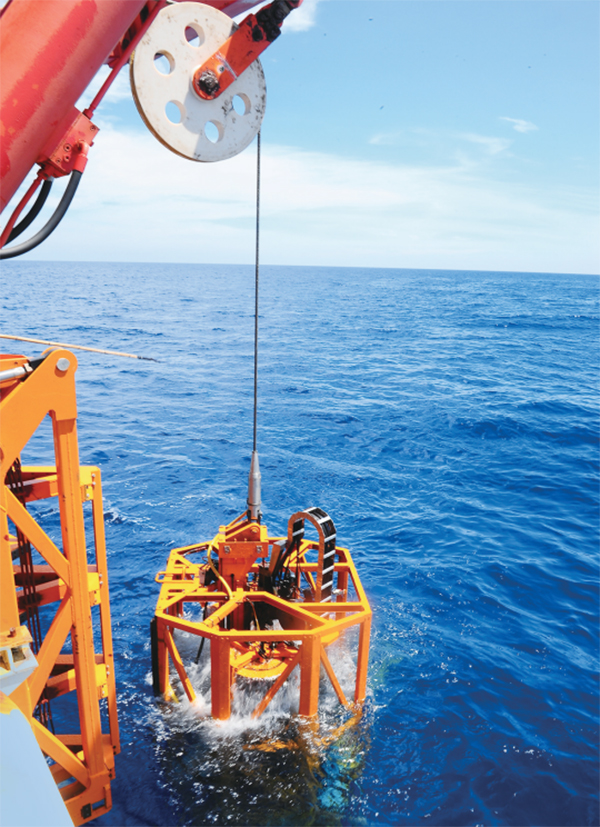 每向海底深入一米,對技術(shù)的要求就更高一層。在深海海底下鉆超過200米,意味著在理論上具備了海洋礦產(chǎn)資源全覆蓋的勘探能力?!昂E"蛱枴笨此讫嬋淮笪?,到了海底,卻像一條泥鰍一樣靈活,易操作、多功能、高效率、低成本,獨(dú)創(chuàng)的巖芯管全長直接密封保壓取芯原理、技術(shù)與工藝,取出來的可燃冰保壓保存率超過80%,領(lǐng)先國外相關(guān)技術(shù)。系列海底鉆機(jī)已在太平洋洋底以及我國南海、東海等海域鉆下2000多個鉆孔,完成了多座國際海底礦山的普查勘探,結(jié)束了我國依靠租用國外鉆探船開展海域可燃冰勘探的歷史,開創(chuàng)了我國利用海底鉆機(jī)開展海底工程地質(zhì)勘察的時代。