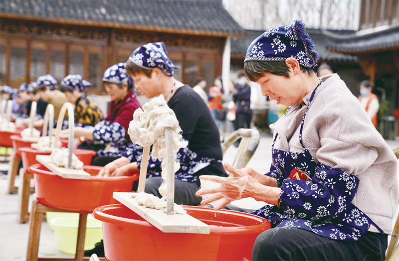 浙江省桐鄉(xiāng)市在推進(jìn)公民道德建設(shè)過(guò)程中,堅(jiān)持以文化人、以文惠民、以文潤(rùn)心,充分彰顯了文化的道德浸潤(rùn)功能。圖為2022年3月10日,桐鄉(xiāng)市石門(mén)鎮(zhèn)東池村舉辦蠶桑絲織技藝大賽,展示傳統(tǒng)技藝,傳承蠶桑文化。 桐鄉(xiāng)市委宣傳部供圖