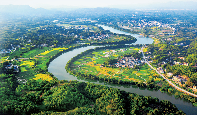圖為位于福建省龍巖市長汀縣的汀江國家濕地公園三洲鎮(zhèn)曾坊村河段。長汀曾是中國南方紅壤區(qū)水土流失最嚴重的縣之一。習(xí)近平總書記在福建工作期間,先后5次赴長汀調(diào)研,持續(xù)推動水土流失治理。一任接著一任干,如今,長汀水土流失治理成為全球生態(tài)修復(fù)典型。 福建日報社供圖