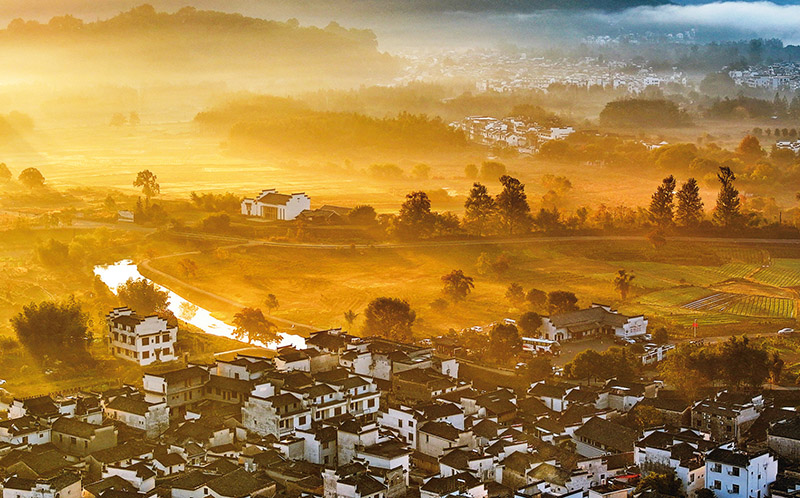 黨的十八大以來,我國生態(tài)文明建設從理論到實踐都發(fā)生了歷史性、轉(zhuǎn)折性、全局性變化,美麗中國建設邁出重大步伐。圖為2023年11月1日在安徽省黃山市黟縣宏村鎮(zhèn)盧村拍攝的秋景(無人機照片)。 新華社發(fā) 施亞磊/攝